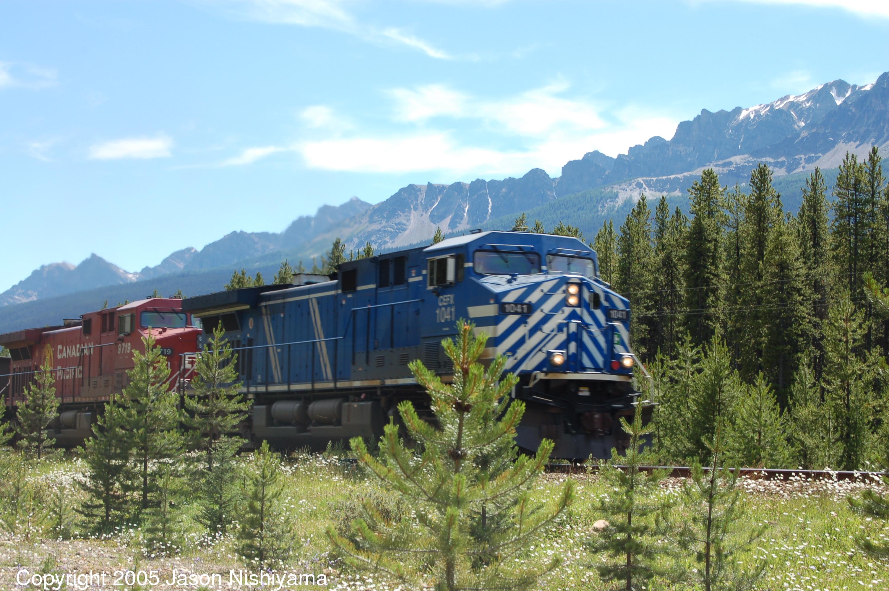 Leased AC4400 CEFX1041 runs on CP rails through Banff National Park.