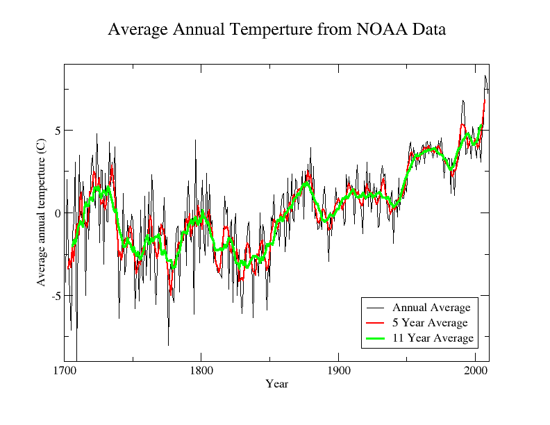 Graph of US temperature since 1700