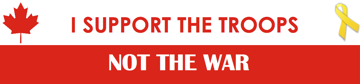 A large banner for supporting the troops, but not supporting the war.